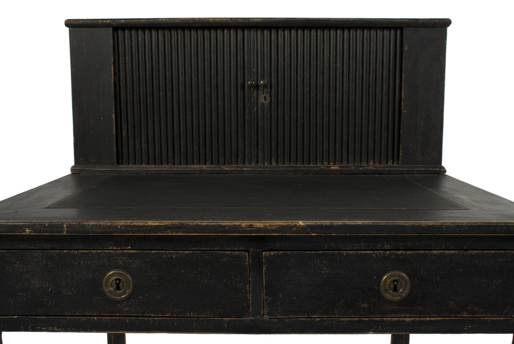 #554 Gustavian desk with two drawers, leather top and another compartment on top with sliding doors. It's signed CLB for Carl Lindborg who was Stockholm Master during the late 1700's. Sweden,